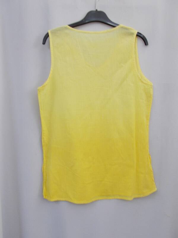 Débardeur coloris jaune clair en dégradé brodé avec ajout de perles rocailles sur encolure V