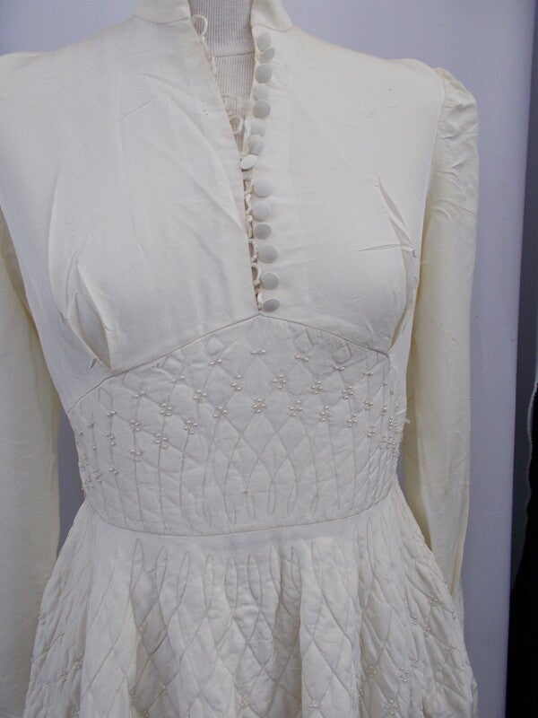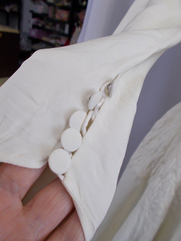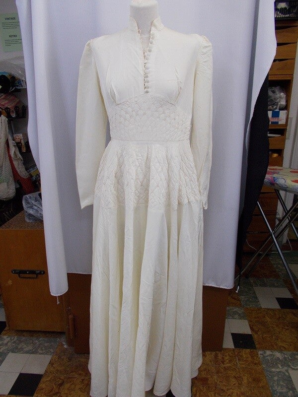 Robe de Mariée blanc cassé des années 40/50 , fermée par 14 petits boutons sur le buste et 1 Zip sur le côté