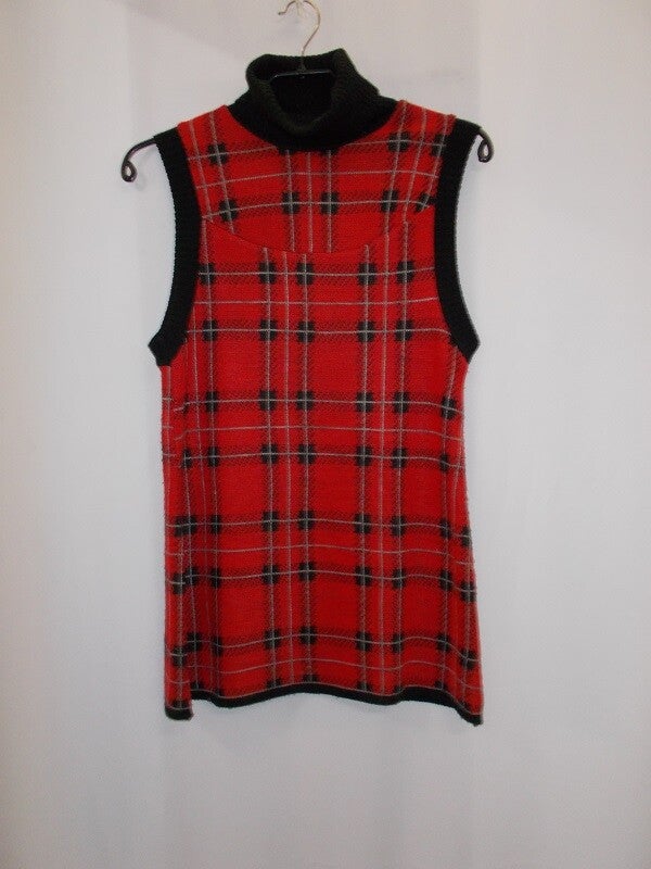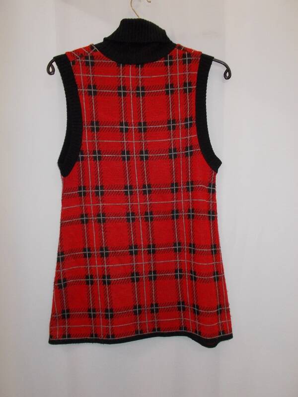 Tunique jacquard nuance Rouge et noir à col montant noir,